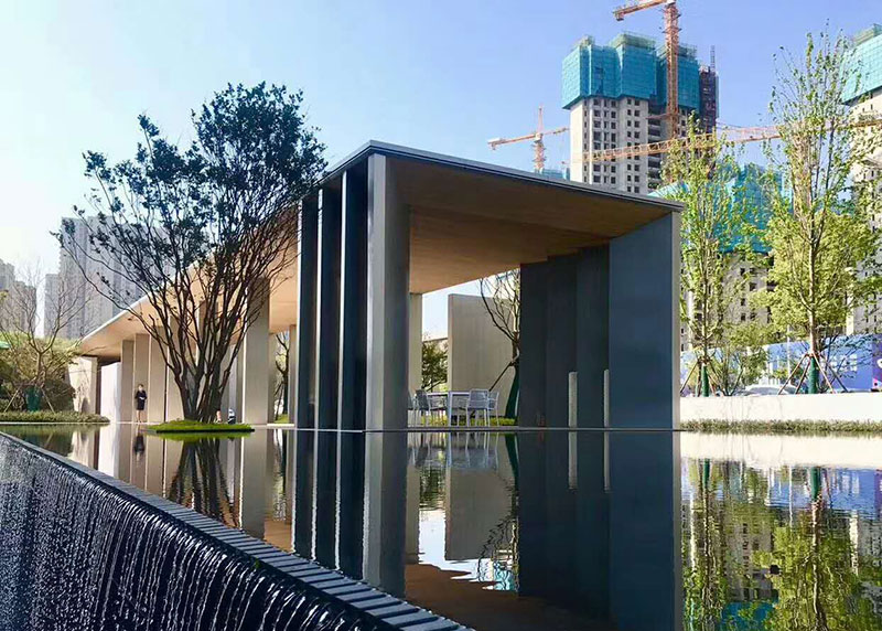 仿木紋貼片石與水色交相輝映,融入江南園林水系的和諧
